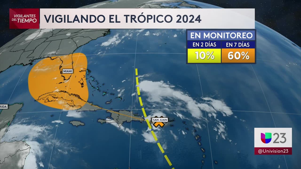 El Centro Nacional de Huracanes elevó la posibilidad de que la onda tropical que actualmente lleva tormentas a Puerto Rico se desarrolle como un ciclón en los próximos dos días. El sistema de mal tiempo afectaría Cuba y posiblemente parte del oeste de Florida. Este es el pronóstico.