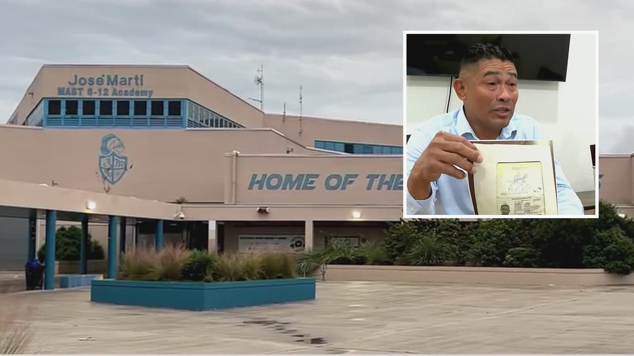 Un policía escolar y un representante de la escuela José Martí Mast Academy le negaron al nicaragüense Marvin de Jesús Membreno sacar a su hija del centro educativo luego de no reconocerle su pasaporte. Además, asegura que cuestionaron su forma de llegar a la escuela, hecho que interpretó como verificación de su estatus legal. “Me amenazaron con arrestarme porque me dijo ‘¿cómo llegaste?’”, precisó.