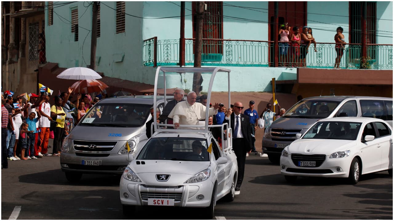 El papa Francisco recorriendo Santiago de Cuba el martes 22 de septiembre de 2015.