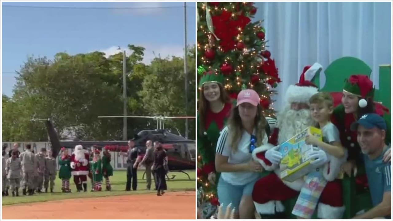 Papá Noel llegó en helicóptero a Sweetwater: compartió con los niños y les dio regalos