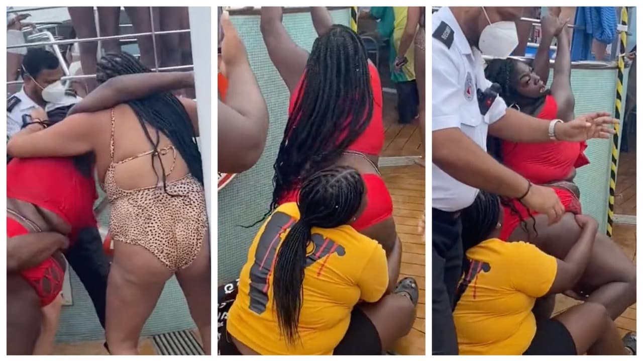 También en el bar, personal de seguridad del barco, trataba de contener la pelea pero había unas 30 personas involucradas en el incidente.