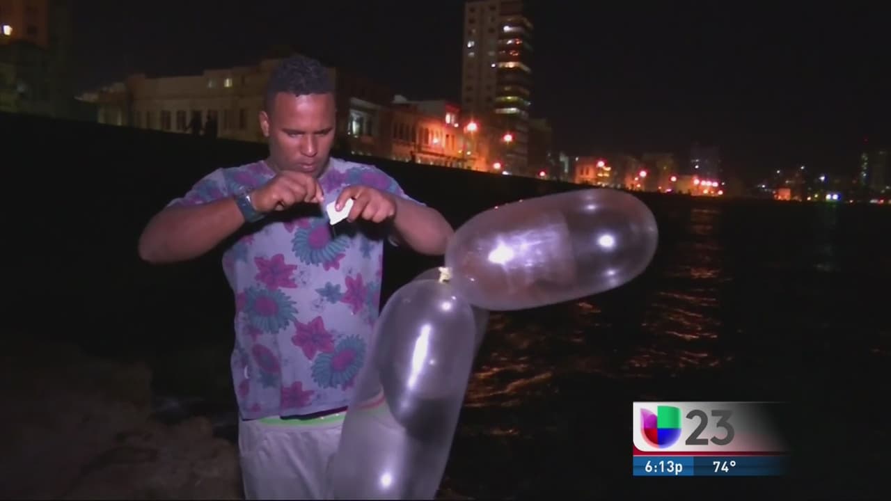 Ante la falta de recursos, los pescadores en la isla han ingeniado un método para obtener la pesca del día con el uso de preservativos.