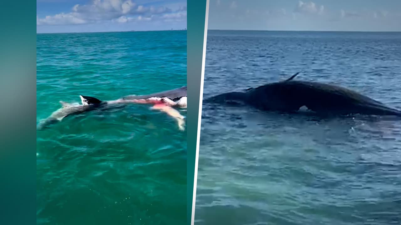 Pescadores graban el momento en que tiburones devoran una ballena en Key Biscayne