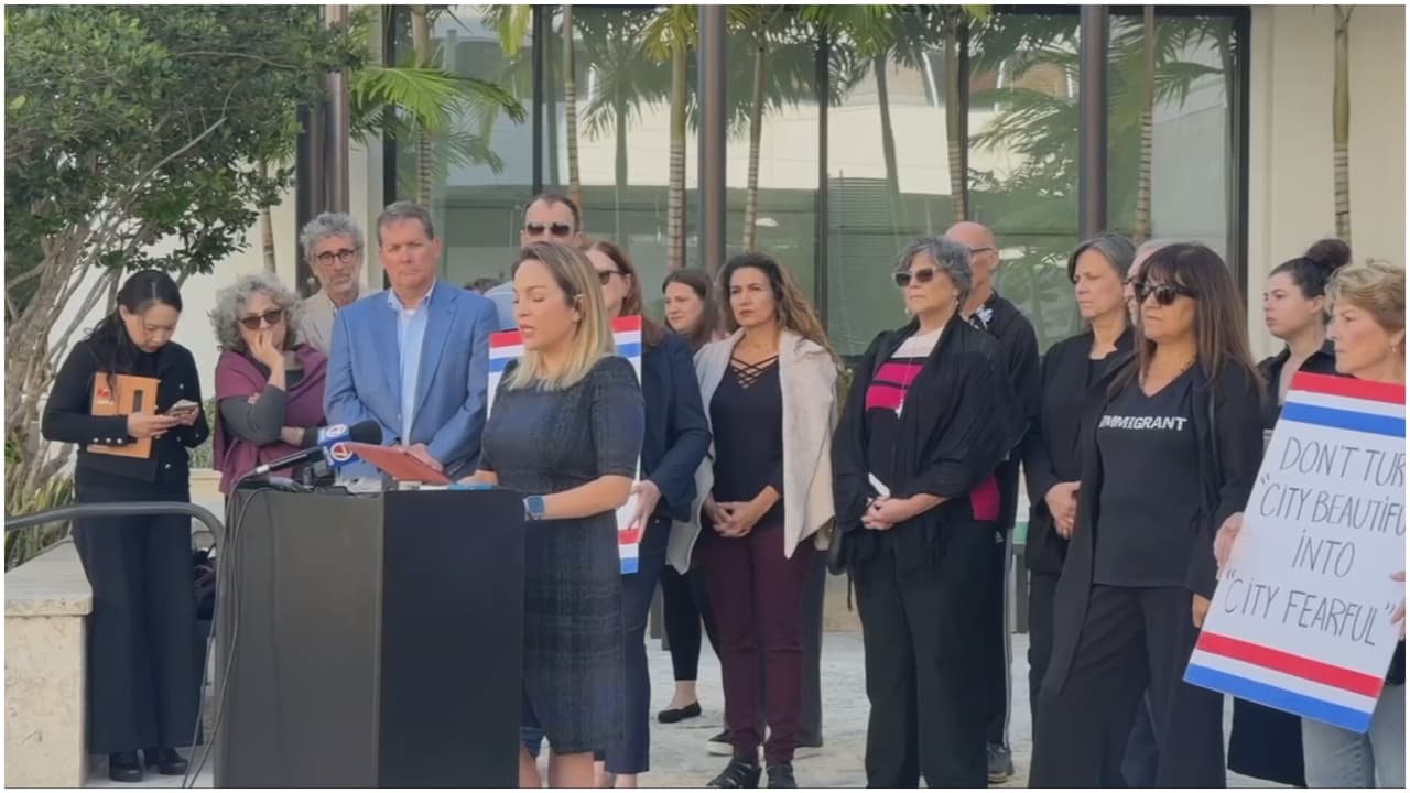 Residentes y comerciantes de la ciudad de Coral Gables se manifestaron frente a la sede del departamento de policía de esta ciudad, para exigir que terminen el acuerdo para colaborar con ICE en el arresto de inmigrantes indocumentados.