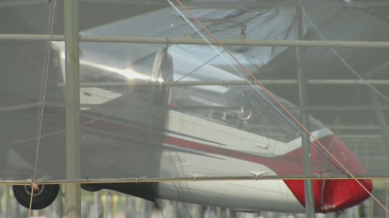 Planeador aterriza sobre la malla que cubría un vivero en Homestead, Florida