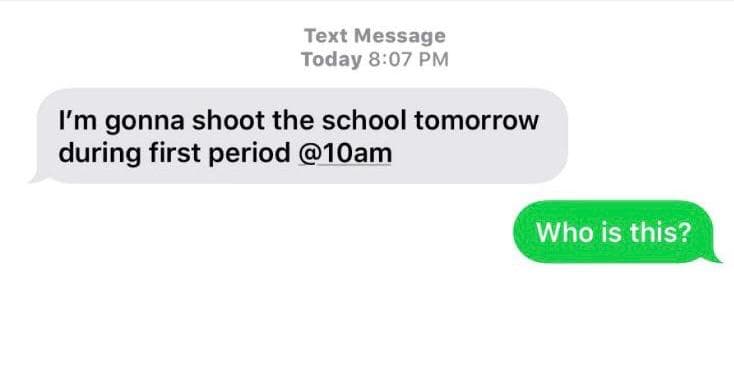 Uno de los estudiantes alertó cuando recibió un mensaje de texto con la amenaza del supuesto tiroteo, el cual se llevaría a cabo este miércoles por la mañana.