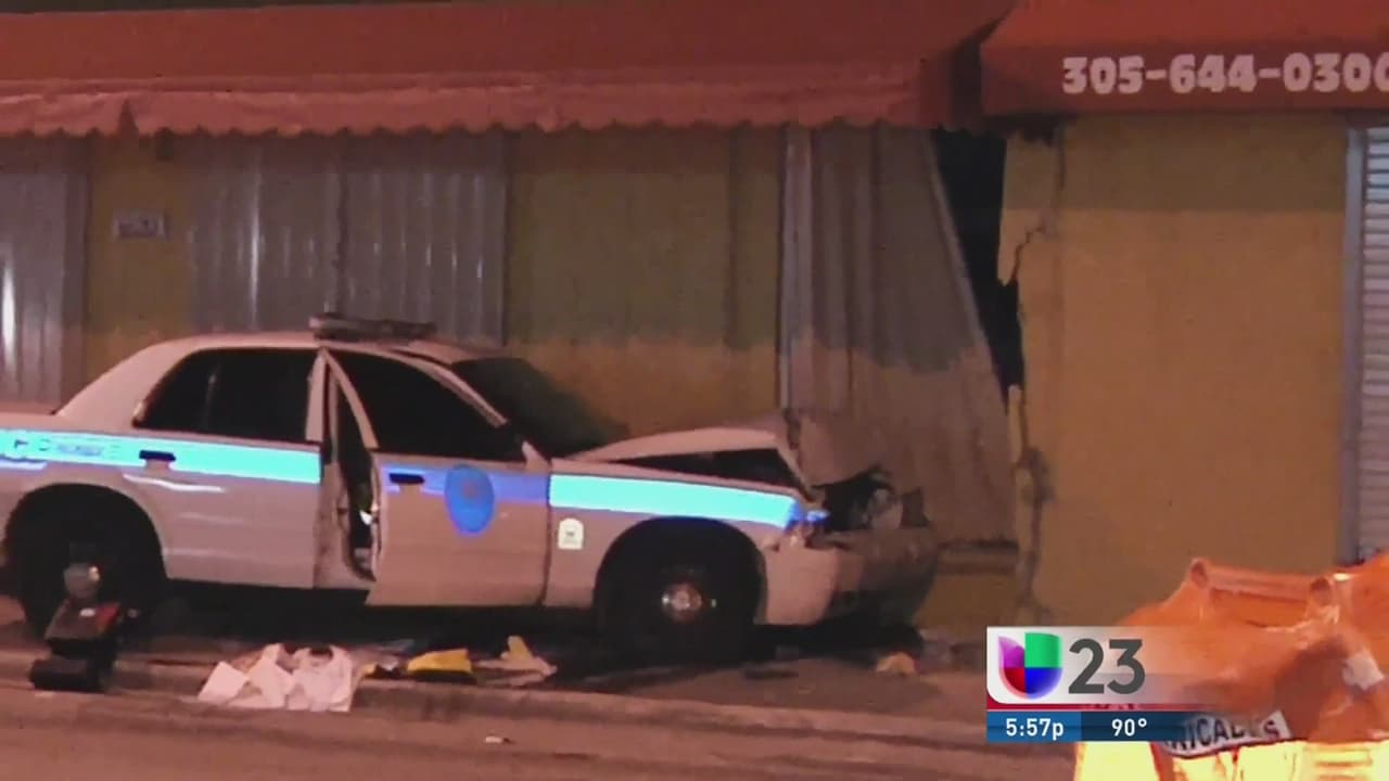 Policía estrella su patrulla contra una tienda en La Pequeña Habana