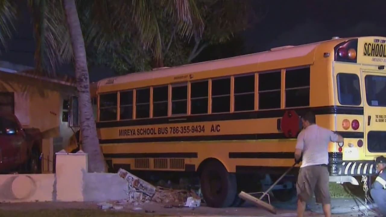 Policía investiga causas de accidente del autobús escolar que se incrustó en una vivienda en Hialeah
