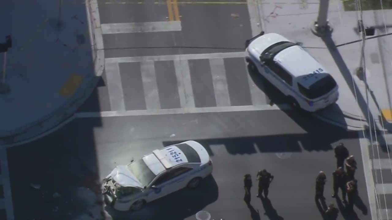 Policía resulta lesionado luego de que un auto chocara contra su patrulla en la Pequeña Habana