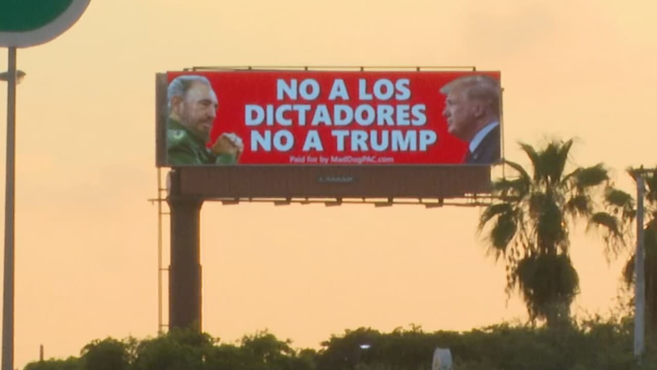 “No a los dictadores”: estallan las opiniones ante la polémica valla que compara a Trump con Castro