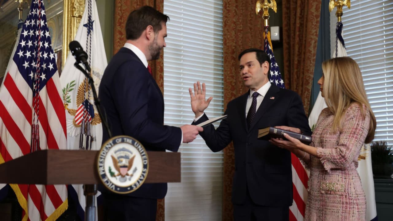 El vicepresidente JD Vance llevó a cabo la juramentación de Marco Rubio, quien se convirtió en el primer hispano en ocupar el cargo de secretario de Estado. Durante el evento, el cubano dio algunas palabras en español para agradecer a sus padres y dijo que “el propósito de su vida fue que nosotros pudiéramos vivir los sueños que no fueron posibles para ellos”.