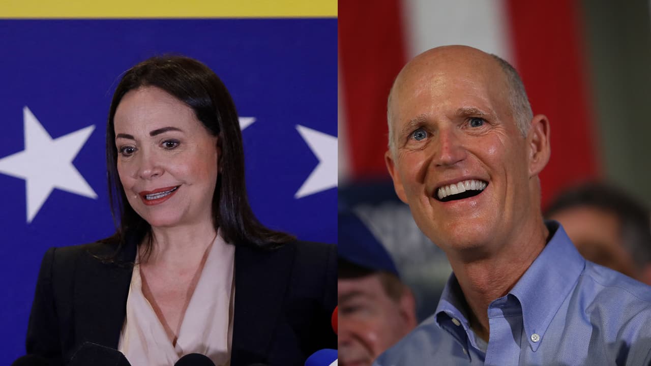 En medio de un evento que realizó la organización Independent Venezuelan-American Citizens IVAC, el senador Rick Scott reiteró el apoyo a María Corina Machado, candidata oficial de la oposición venezolana. El respaldo se da después de conocerse que la fiscalía chavista emitió orden de aprehensión contra tres de los colaboradores más cercanos de Machado, hecho que la candidata señala como "intimidación".