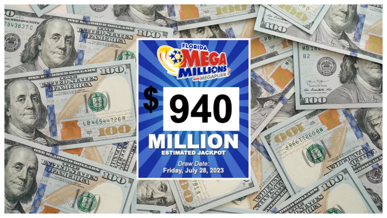 La Lotería de Florida informó que desde el 21 de abril nadie gana el Mega Millons y el premio para el sorteo de este 28 de julio asciende a $940 millones. Te contamos cuánto es la opción en efectivo.