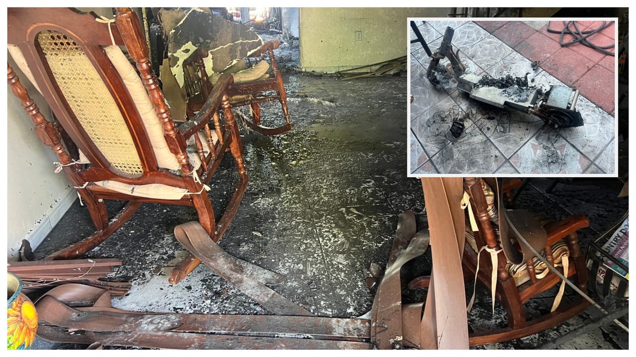 De acuerdo con el reporte preliminar del Departamento de Bomberos de Miami, una patineta eléctrica podría haber provocado el incendio que consumió la vivienda de esta familia. Los afectados cuentan que la explosión fue tan fuerte que el techo quedó completamente dañado al igual que las ventanas.