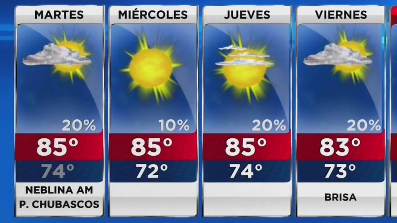 Miami amanece con bancos de neblina en algunas zonas, que se dispersarán hasta tener un día mayormente despejado. La temperatura máxima será de 85 grados, con probabilidad de chubascos.