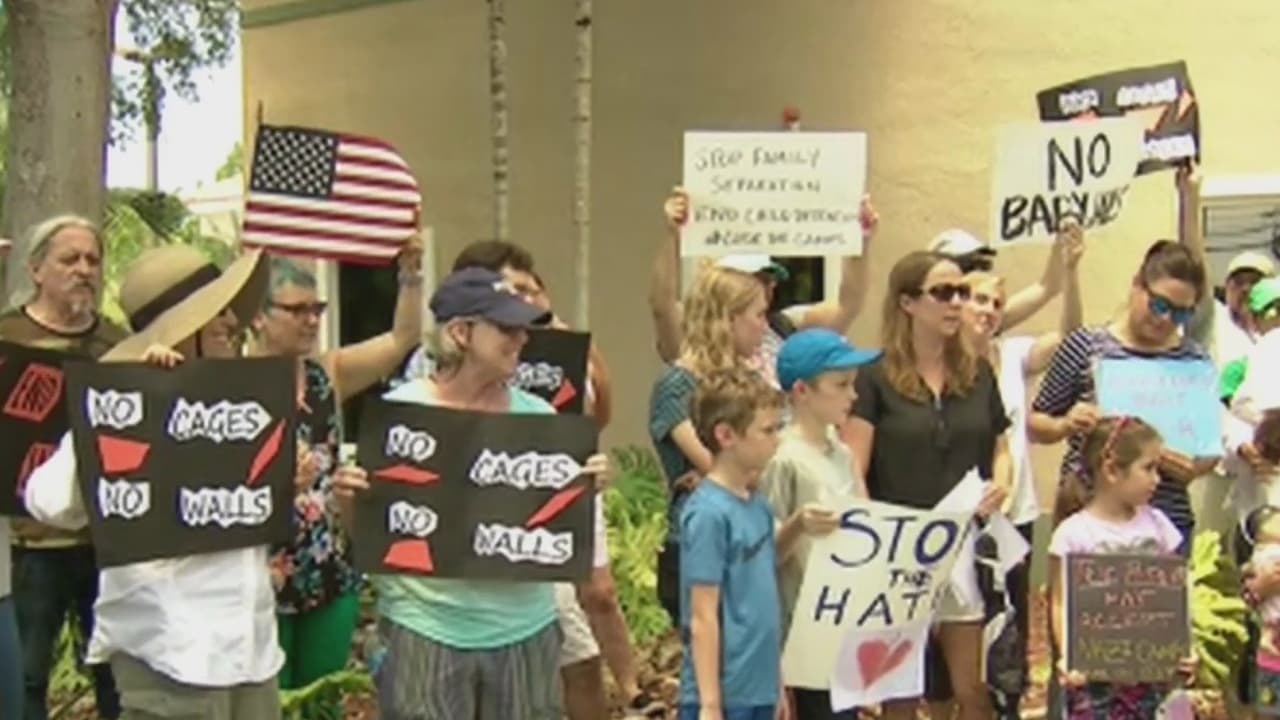 Protestan frente a la oficina del senador Marco Rubio para exigir el cierre de centros de detención en Florida