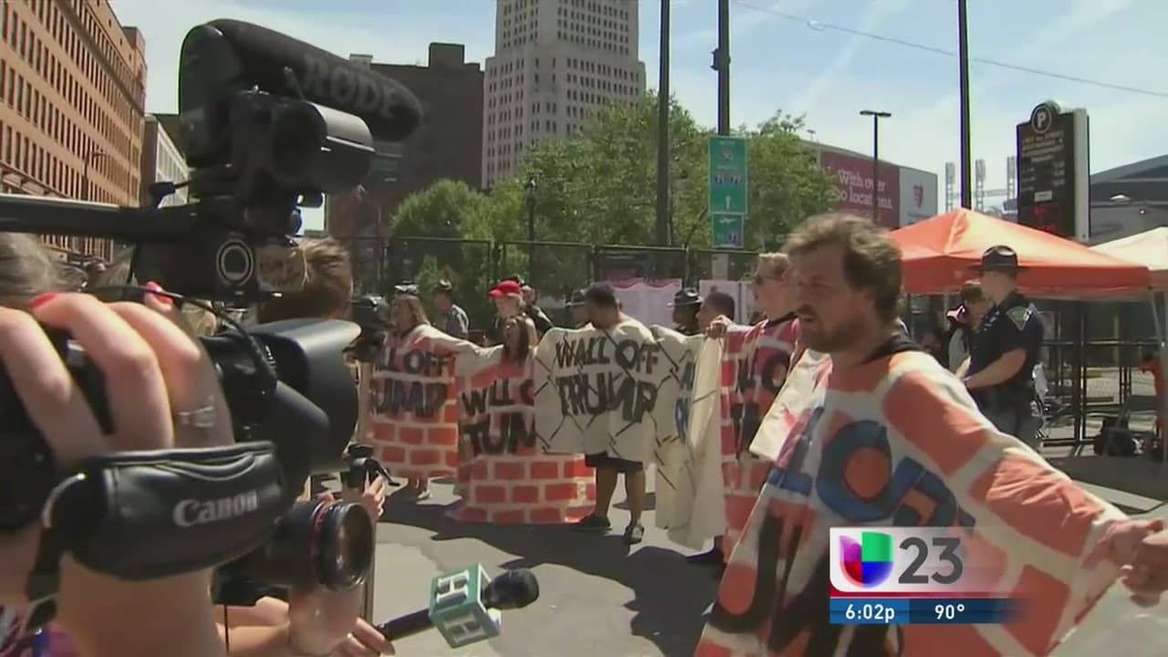 Durante el tercer día de la Convención Republicana cientos de manifestantes llegaron hasta las inmediaciones del Quicken Loans Arena, en Cleveland, para mostrar su rechazo ante el candidato Donald Trump.
