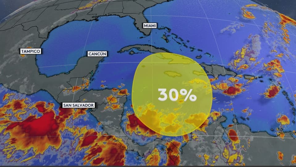 El Centro Nacional de Huracanes monitorea una zona de mal tiempo en el mar Caribe, con posibilidades de convertirse en ciclón.