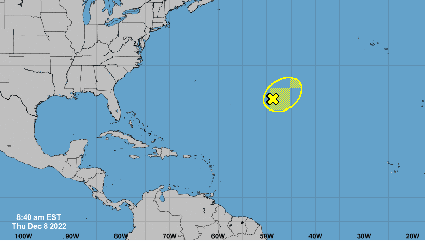 La posibilidad de tener un ciclón tropical en el Atlántico durante diciembre se redujo. El disturbio se está moviendo hacia aguas más frías en el Atlántico, en donde el ambiente no está favorable para el desarrollo de un ciclón.