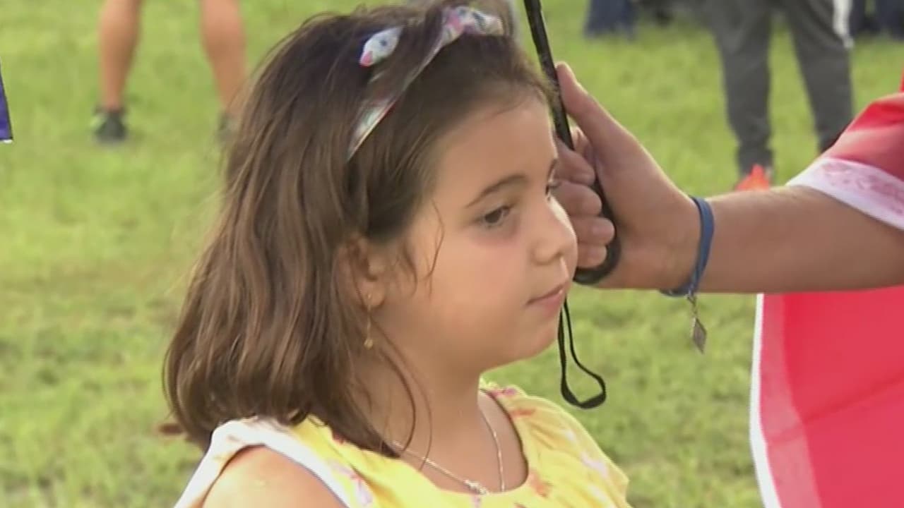 Acompañada de su padre y con una bandera de Cuba en la mano, esta menor asistió a uno de los diversos eventos que se realizan en pro de la libertad de la isla. Allí aseguró que extraña su hogar y que le desea a quienes viven bajo el régimen que salgan adelante.