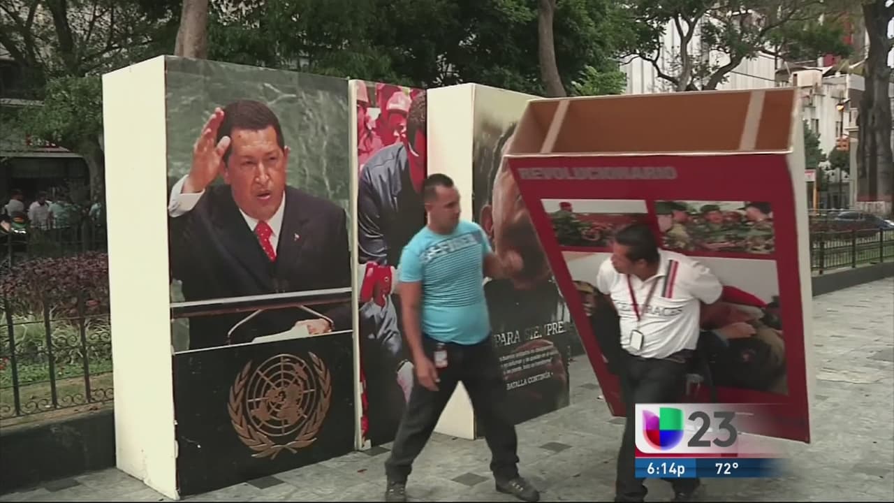 Las imágenes fueron retiradas del frente del Parlamento venezolano un día después de que la oposición tomara el control.