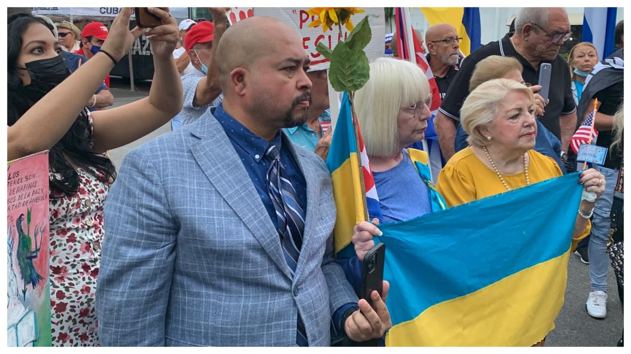 Exiliados cubanos, nicaragüenses y venezolanos hicieron parte de esta manifestación organizada por el Movimiento Democracia, en la que se repudió la invasión rusa a Ucrania. En el evento frente al restaurante Versailles en Miami, también estuvieron presentes comisionados de la ciudad, el alcalde Francis Suárez y la alcaldesa Daniella Levine Cava.