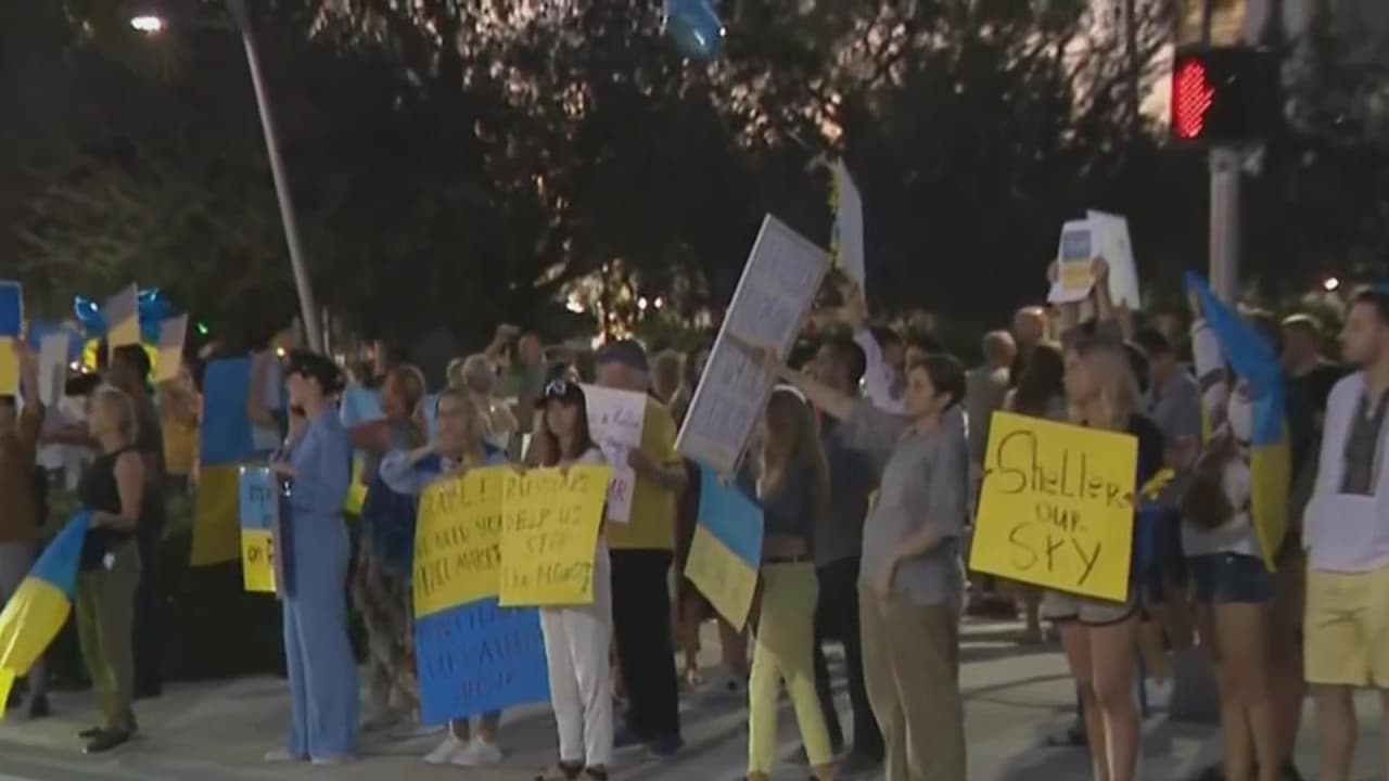Realizan manifestaciones en el sur de Florida para apoyar a Ucrania y pedir a Rusia que suspenda el ataque