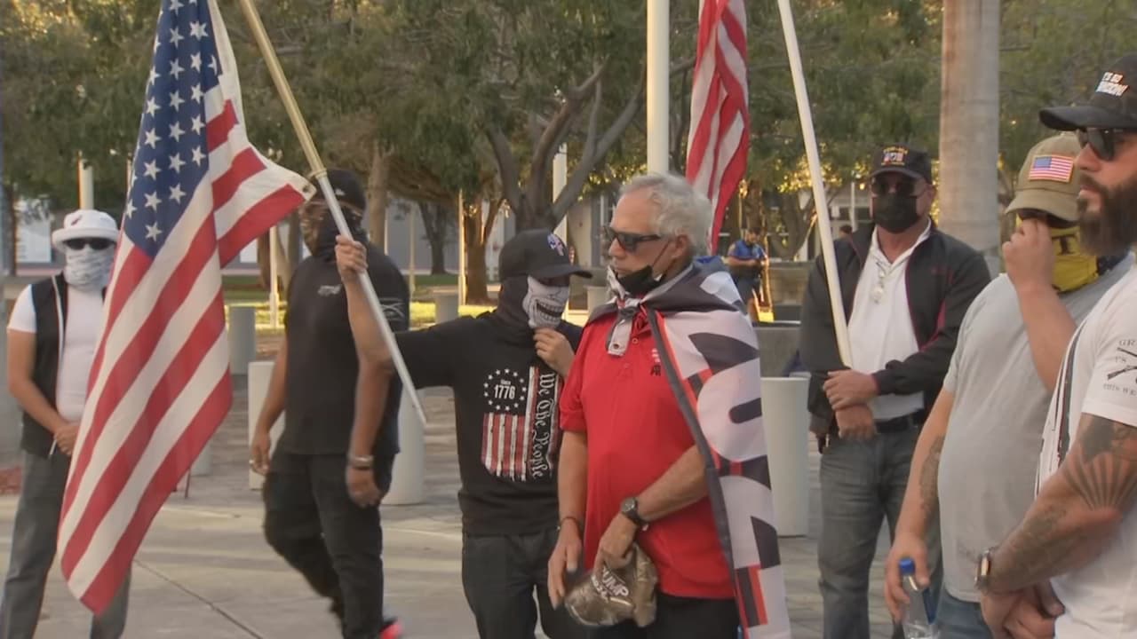 Simpatizantes de Donald Trump se dieron cita en el downtown de Miami para recordar el asalto al Capitolio. Los participantes dijeron no estar de acuerdo con los cargos federales que enfrentan quienes entraron de forma violenta a la sede del Congreso de EEUU.