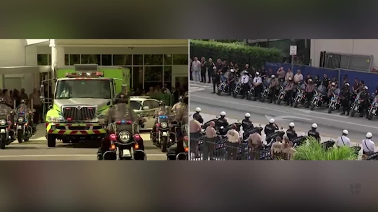 Policías de múltimples agencias del orden acompañaron la procesión en la que se trasladó el cuerpo del detective César "Echy" Echaverry, desde el Hospital Jackson Memorial a la Oficina del Examinador Médico del Condado.