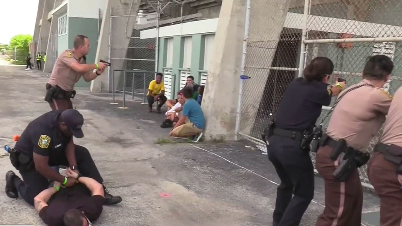 Realizan simulacro de un tiroteo en el campo de fútbol americano de Miami Dade College