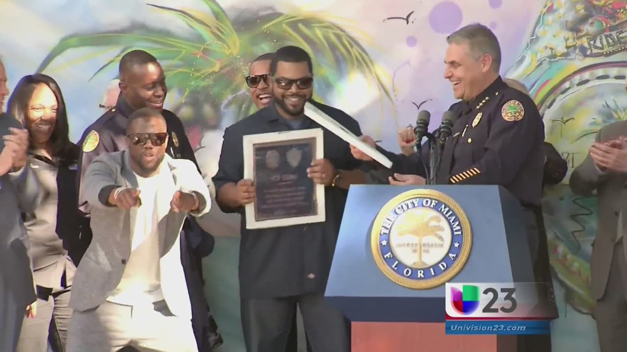 Los actores de Ride Along 2, Ice Cube y Kevin Hart fueron reconocidos en Miami concendiéndole dos estrellas en el Paseo de la Fama.