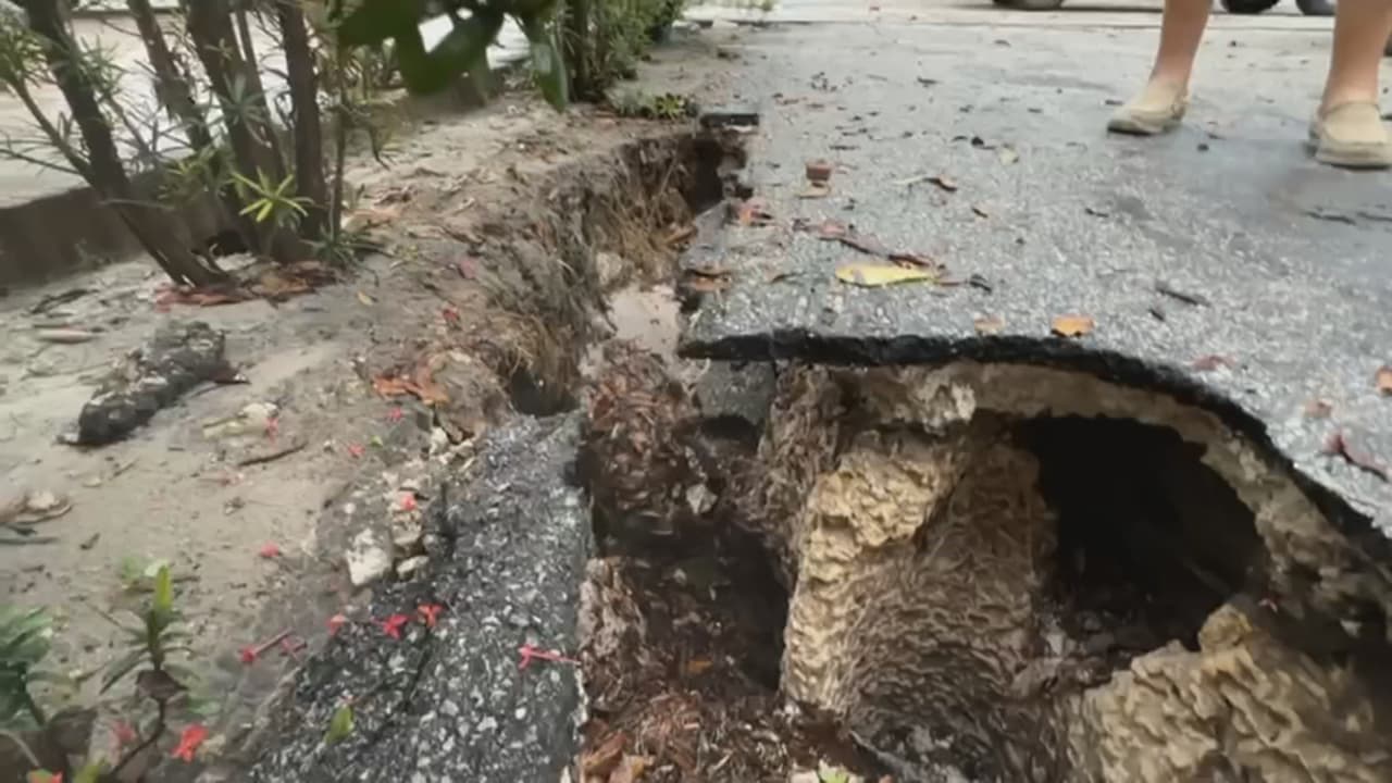 Residentes de Hialeah temen por un socavón de 7 pies que se formó afuera de su casa