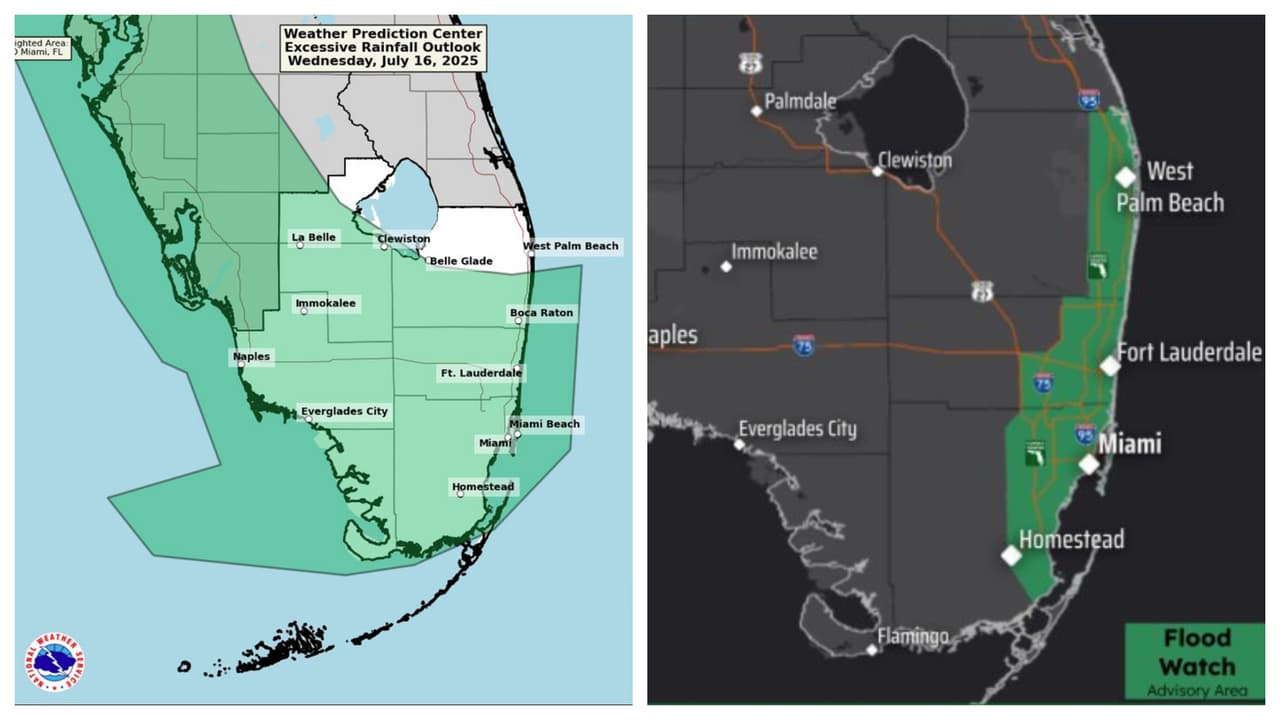 Los condados Miami-Dade, Broward y Palm Beach se encuentran en el nivel 2 de riesgo de lluvia excesiva para esta tarde. Los tres condados se encuentran bajo advertencia de inundaciones repentinas, desde las 2:00 pm a las 11:00 pm.