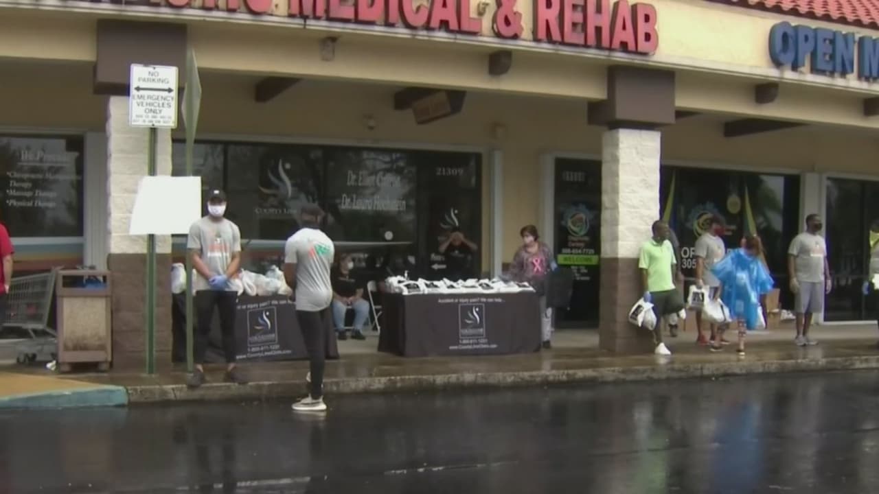 La fundación del jugador Albert Wilson, de los Miami Dolphins, realiza esta labor para llevarles una comida de Acción de Gracias a unas 500 familias.