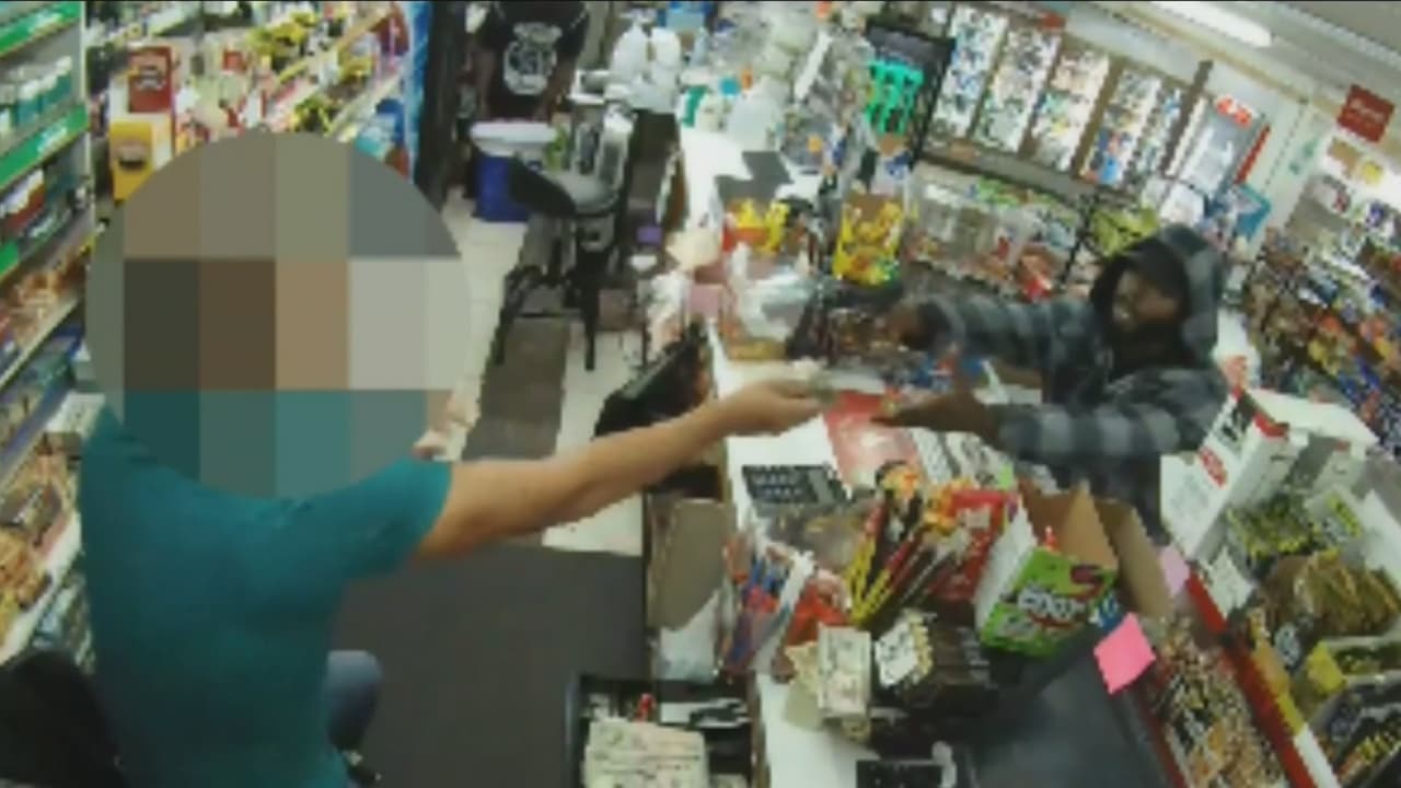 En el video se ve al hombre amenazando con un arma al trabajador de la tienda para exigir el dinero de la caja registradora. La policía ofrece hasta 3,000 dólares de recompensa por información sobre el sujeto.
