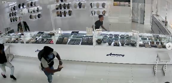 El momento del robo fue captado en video por las cámaras de seguridad de la joyería Amaury Jewerly, ubicada en el suroeste de la ciudad. La policía informó que se llevaron cadenas de oro valoradas en decenas de miles de dólares.