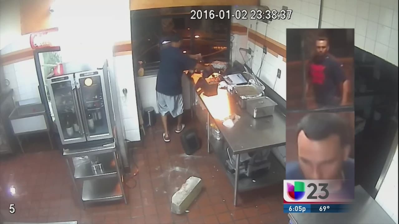 Un sujeto lanzó un ladrillo por la ventanilla y robó la registradora, entra otras cosas y escapó.