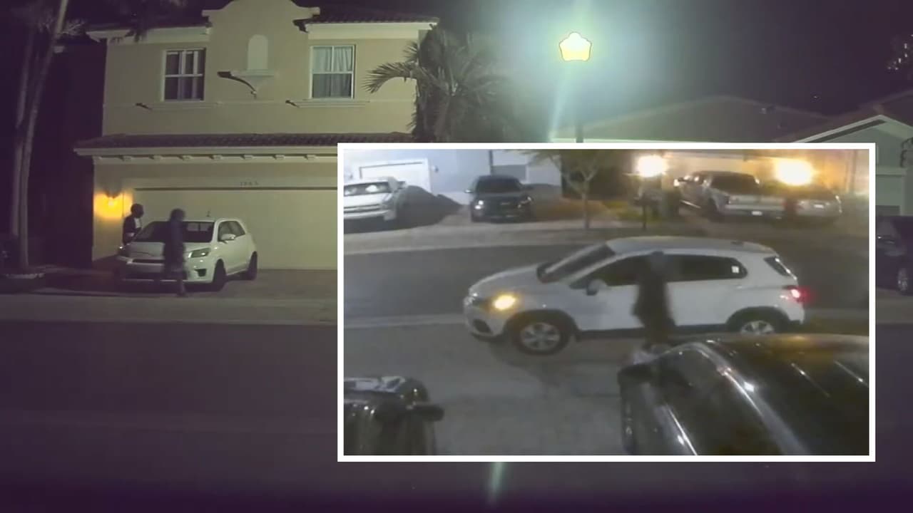 Las autoridades buscan a 2 sospechosos que quedaron captados en cámara abriendo puertas de varios vehículos y robando lo que había adentro. Esto ocurrió en una zona residencial en Homestead la madrugada de este domingo. Si reconoces a estos sujetos, llama a la policía.