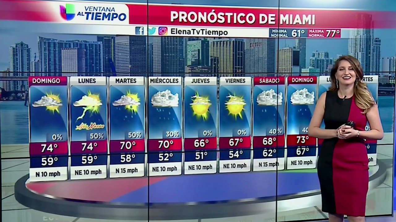 La temperatura mínima estará en 53 grados durante la madrugada de este domingo. El lunes regresará la lluvia al sur de Florida asociada al paso de un frente frío sobre nuestra región.