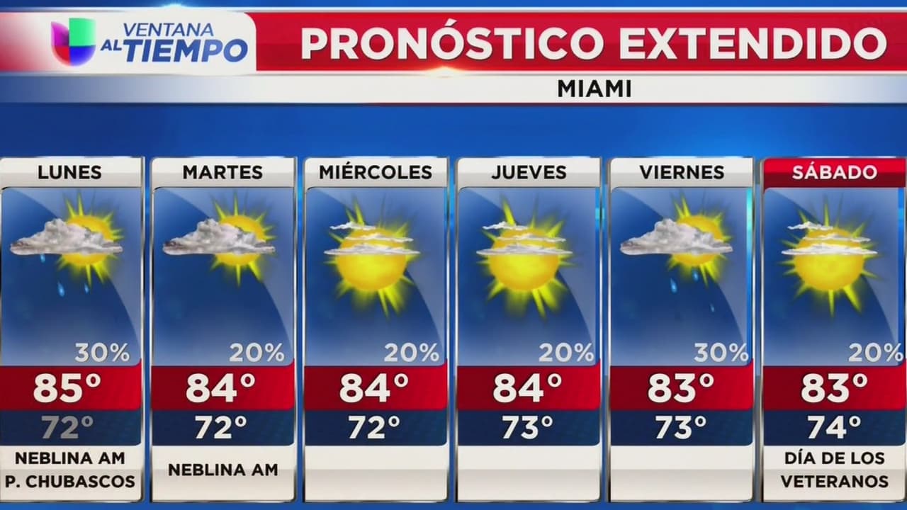Se esperan temperaturas máximas de 85 grados en Miami para este lunes
