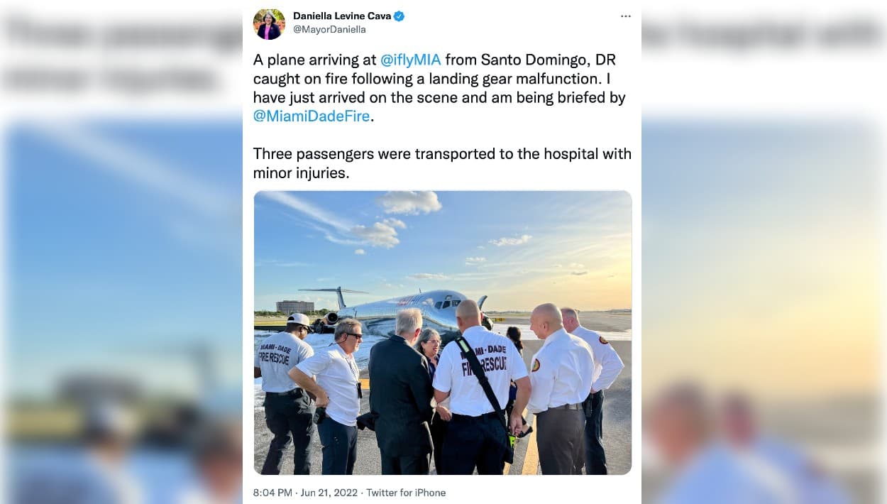 Avión que salió de República Dominicana se incendia tras aterrizar en Miami con 126 personas a bordo
