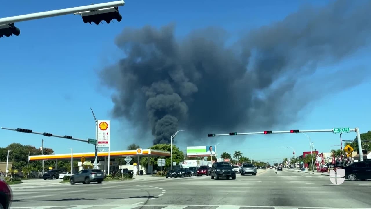 De acuerdo con los bomberos de Miami-Dade, el fuego se inició este sábado cerca del mediodía, en la avenida 32 del noroeste y la calle 127, en un depósito de chatarra. Varios carros fueron atrapados por las llamas dentro del lugar.