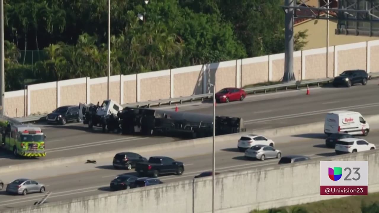 El accidente ocurrió en la autopista Turnpike a la altura de la calle 88 en el suroeste de Miami-Dade. Un camión cisterna se volcó y se derramó material peligroso.