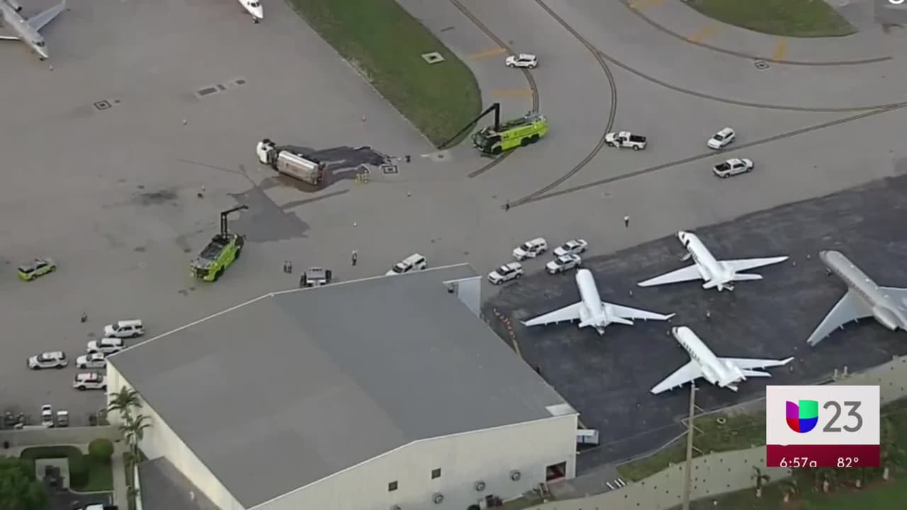 Camión cargado de combustible se vuelca en la pista del aeropuerto de Miami