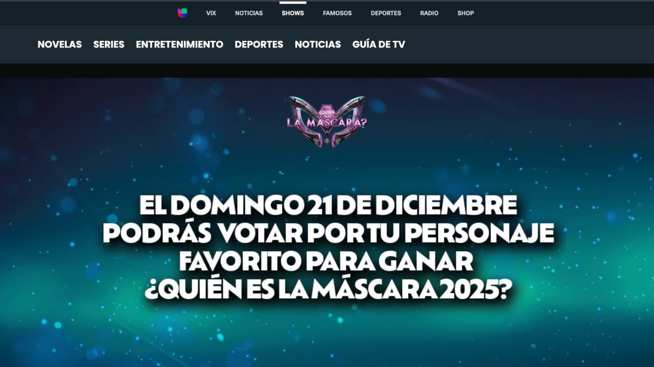¡Apoya a tu favorito! No te pierdas el gran final de ¿Quién es la Máscara? 2025, este domingo 21 de diciembre a las 7 p.m., por Univision y sigue de cerca el sitio del reality para más información.