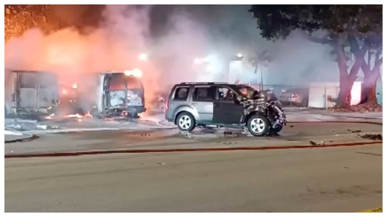 Siete vehículos estacionados estallan en llamas tras aparatoso accidente de tráfico en Hialeah