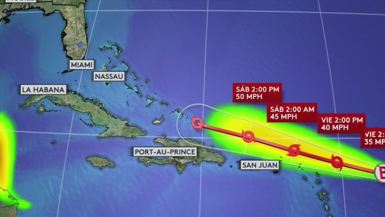 El sistema tiene vientos sostenidos de 35 millas por hora y ráfagas de 45 millas. Varios modelos muestran la posibilidad de que llegue al sur de Florida como un huracán entre el lunes y martes.