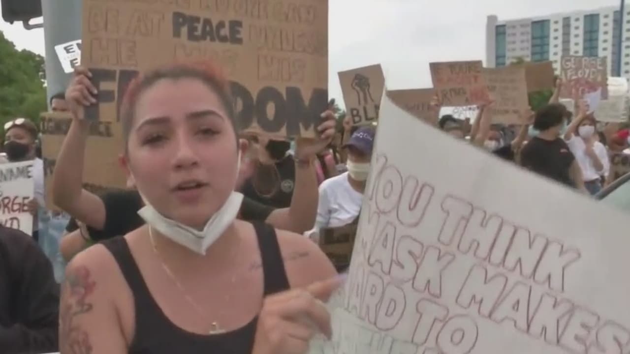 Decenas de alumnos se dieron cita este sábado en los alrededores de la Universidad Internacional de Florida (FIU) para manifestarse en contra del racismo y la brutalidad policial. "Estamos aquí para ayudar en la causa porque ha pasado mucho tiempo de injusticia. Hay que hacer un cambio", dijo Daniela Valencia, una de las participantes.