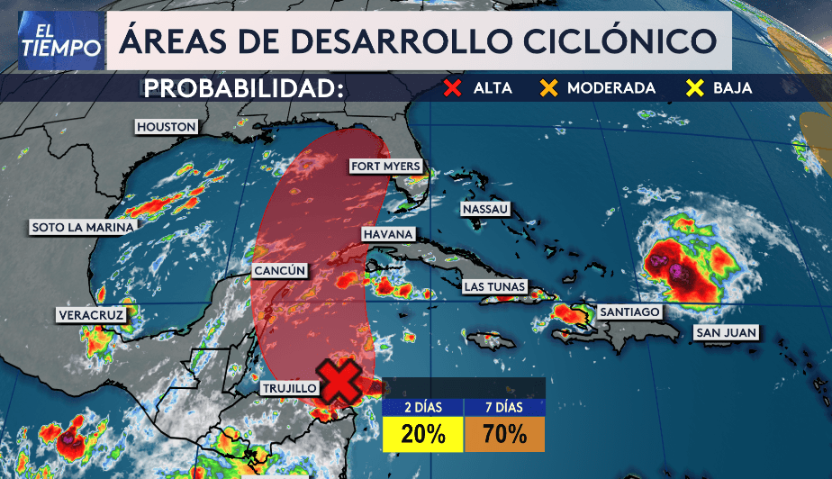 Según el modelo europeo, hay probabilidades que se convierta en tormenta tropical o en huracán. Mientras que el modelo GFS no muestra ningún desarrollo.