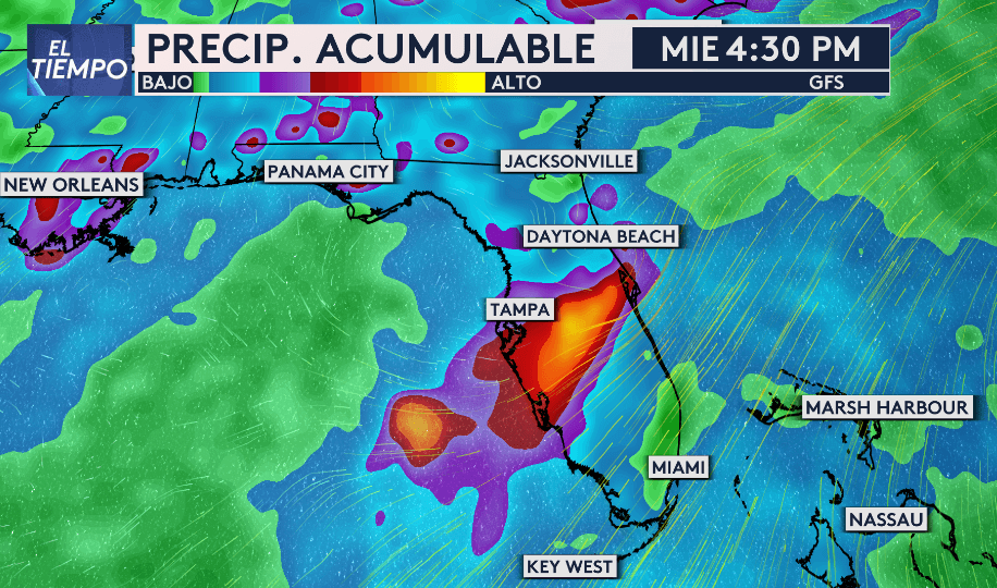 En el sur de Florida las lluvias relacionadas con este sistema comenzarían a sentirse el domingo y con más intensidad a principios de la próxima semana.